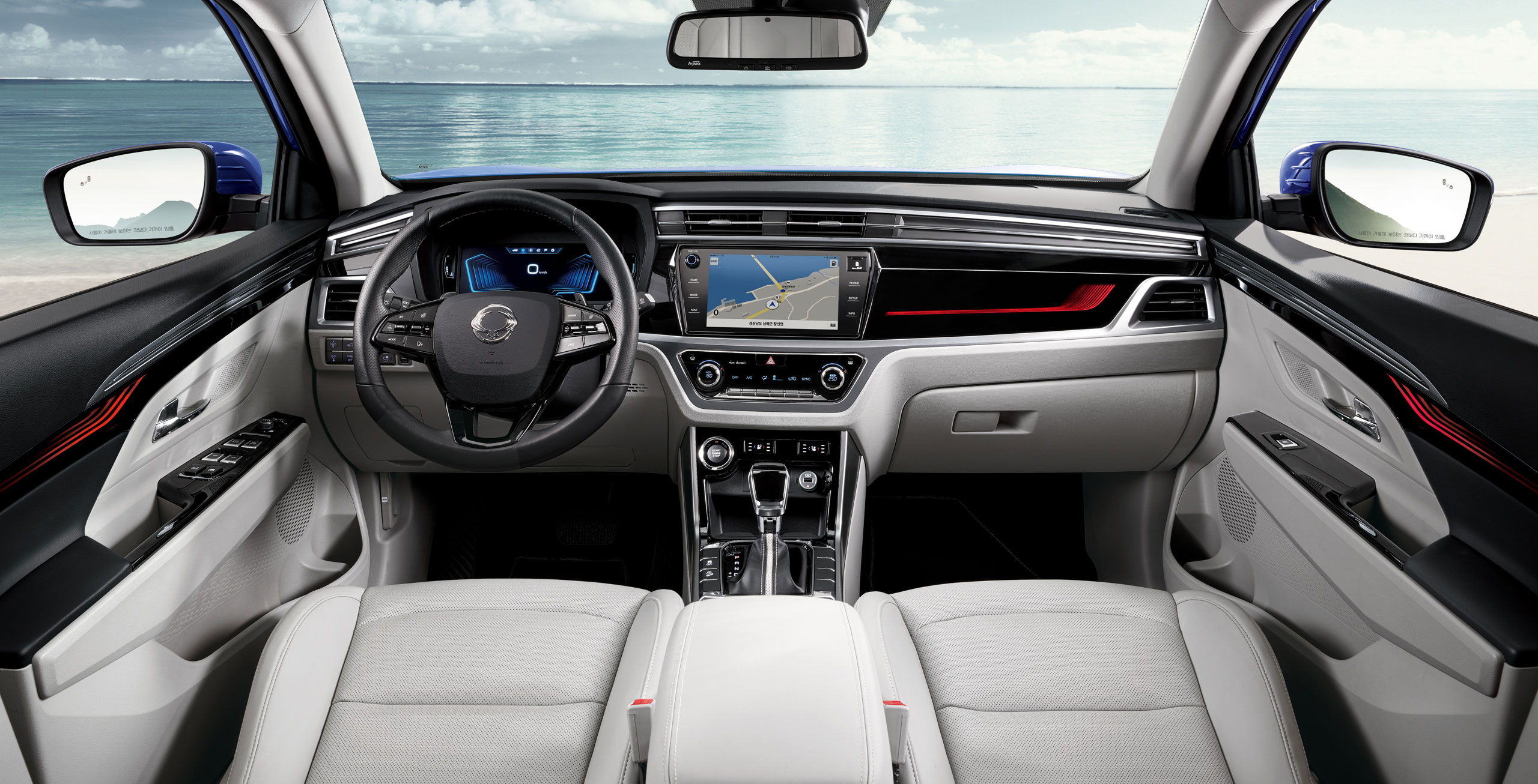 კორანდოს 7 აირბაგი მოყვება, მძღოლის მუხლის აირბაგისა და